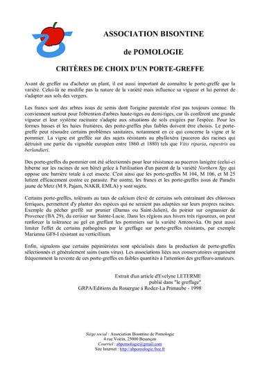 Cette dernière propose des tarifs avantageux sur la fourniture de porte-greffes d'arbres fruitiers.