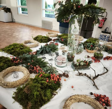 Samedi 06 décembre 2025, les personnes intéressées ont pu s’inscrire auprès de Pierrette Verdant pour partager un atelier « composition de couronnes de noël »